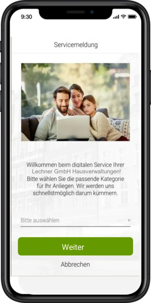 - der leichten und bequemen Erstellung von Servicemeldungen rund um die Uhr.