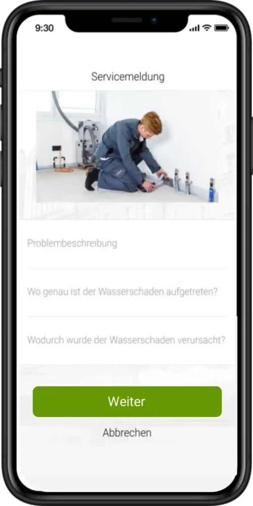 Intelligente Rückfragen in der App. Sie werden durch individuelle Prozesse geleitet und erhalten sofort eine Rückmeldung